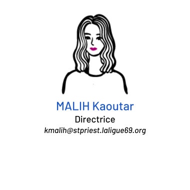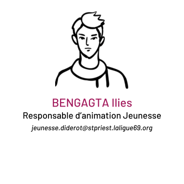 DIRECTION SERVICES GENERAUX POLITIQUES EDUCATIVES ET FORMATION SECTEUR VIE ASSOCIATIVE, ENGAGEMENT ET JEUNESSE SECTEUR EDUCATION, LOISIRS ET FORMATION SECTEUR CULTURE ET CITOYENNETE SECTEUR COMMUNICATION SECTEUR UFOLEP SECTEUR USEP LES MAISONS DE QUARTIER DE SAINT-PRIEST Fédération des Œuvres Laïques du Rhône et de la Métropole de Lyon 20 rue François Garcin69423 LYON Cedex 03Tél : 04 72 60 04 70mail : contact@laligue69.orgOuverture au public du lundi au vendredi : 9h-12h et 13h-17h